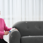 A vacuum cleaner is used to remove dust, hair, and loose dirt from the surface, corners, and under cushions.